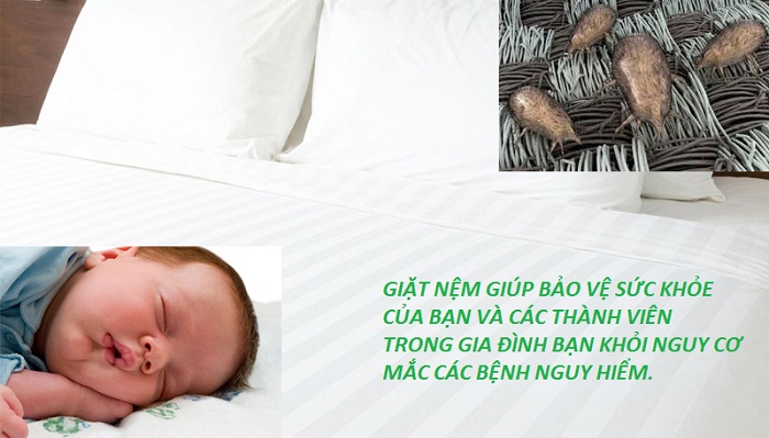 · Bạn có biết nệm là môi trường vô cùng lí tưởng cho các loại vi khuẩn sinh sôi và phát triển, để ngăn ngừa các nguy cơ mắc bệnh từ nệm chúng ta nên giặt nệm định kì và đúng cách. Vì thường xuyên tiếp xúc với nệm nên việc mắc các bệnh về đường hô hấp, da liễu là rất dễ xảy ra và đặc biệt là đối với những đối tượng có hệ miễn dịch yếu như: trẻ em và người cao tuổi.